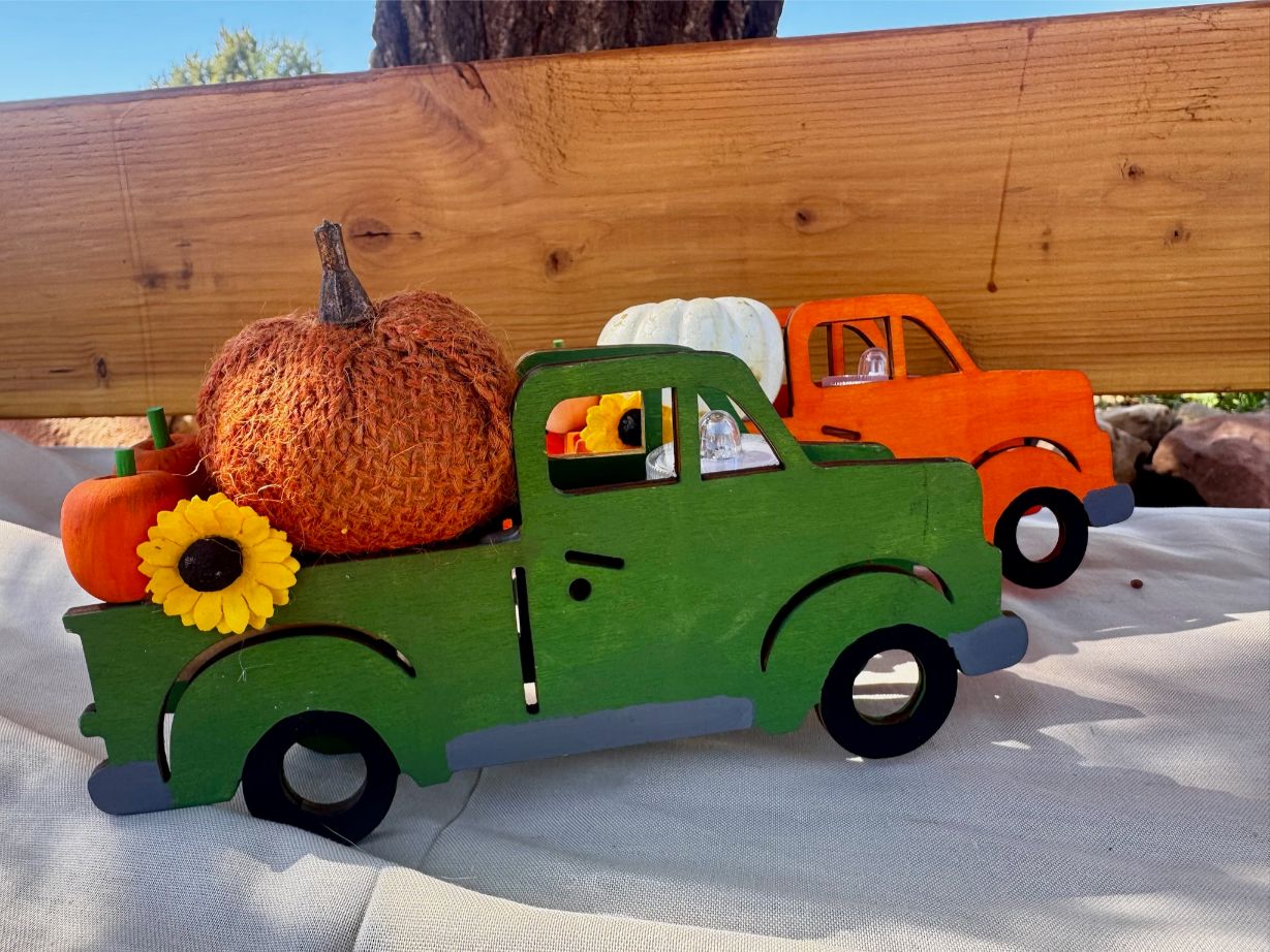 “Green Harvest Truck” Handmade Wooden Fall Decor
