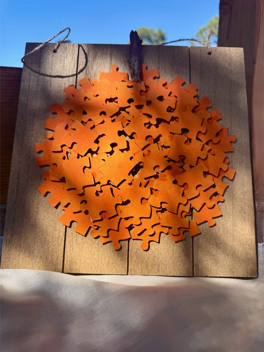 “Puzzle Piece Pumpkin” Handmade Wall Art – Unique Fall Craft Décor