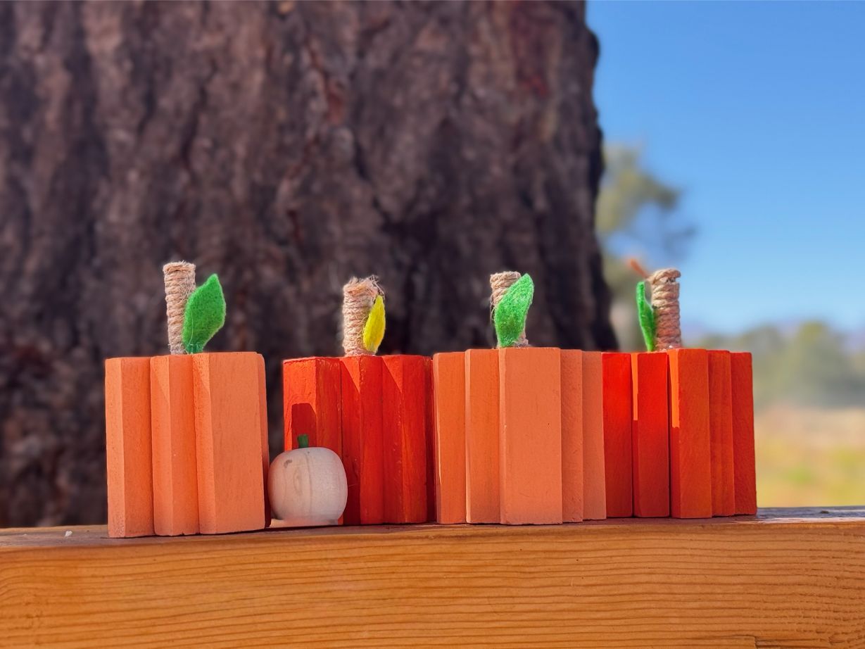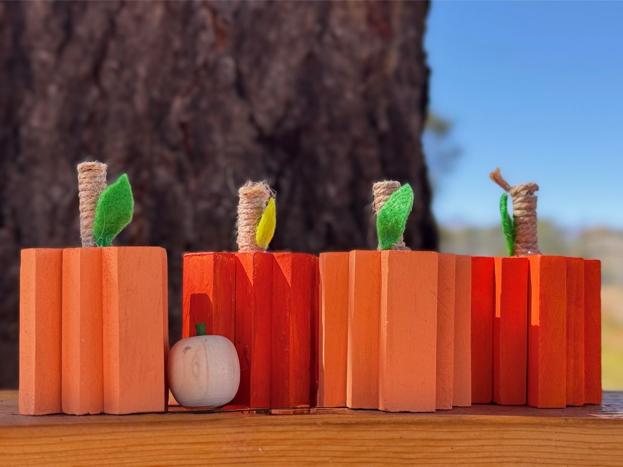 Wood Block Pumpkin Set – Handmade Rustic Fall Decor